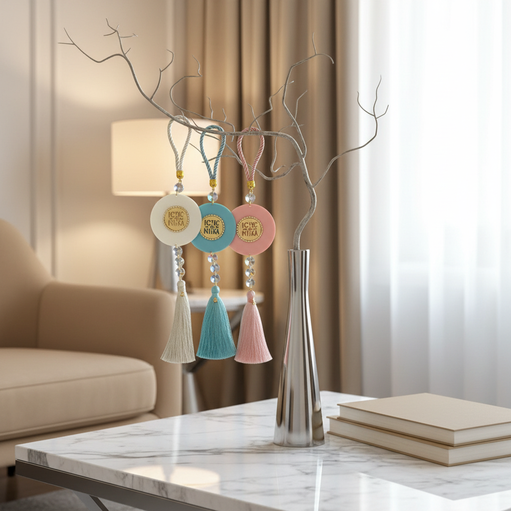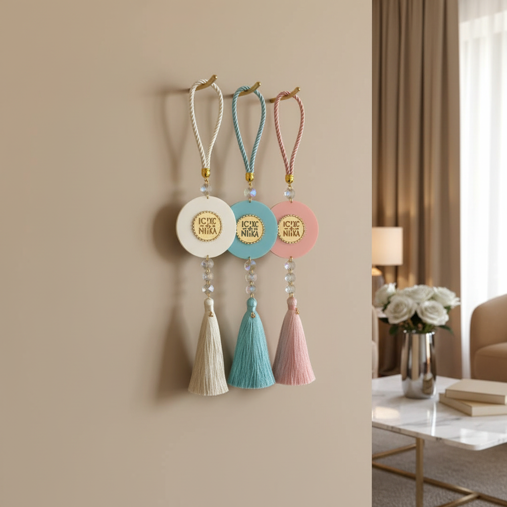 Το Elegant Κωνσταντινάτο είναι χειροποίητο κρεμαστό γούρι, φτιαγμένο με σατέν κορδόνι, στρογγυλή πλεξιγκλάς βάση και εντυπωσιακό κωνσταντινάτο από πλεξιγκλάς καθρέφτη με διάτρητα αρχικά IC XC NIKA και περίγραμμα από λαμπερά στρας. Συνοδεύεται από κρυστάλλινες λεπτομέρειες, charm “26” και πλούσια φούντα για extra festive αίσθηση.