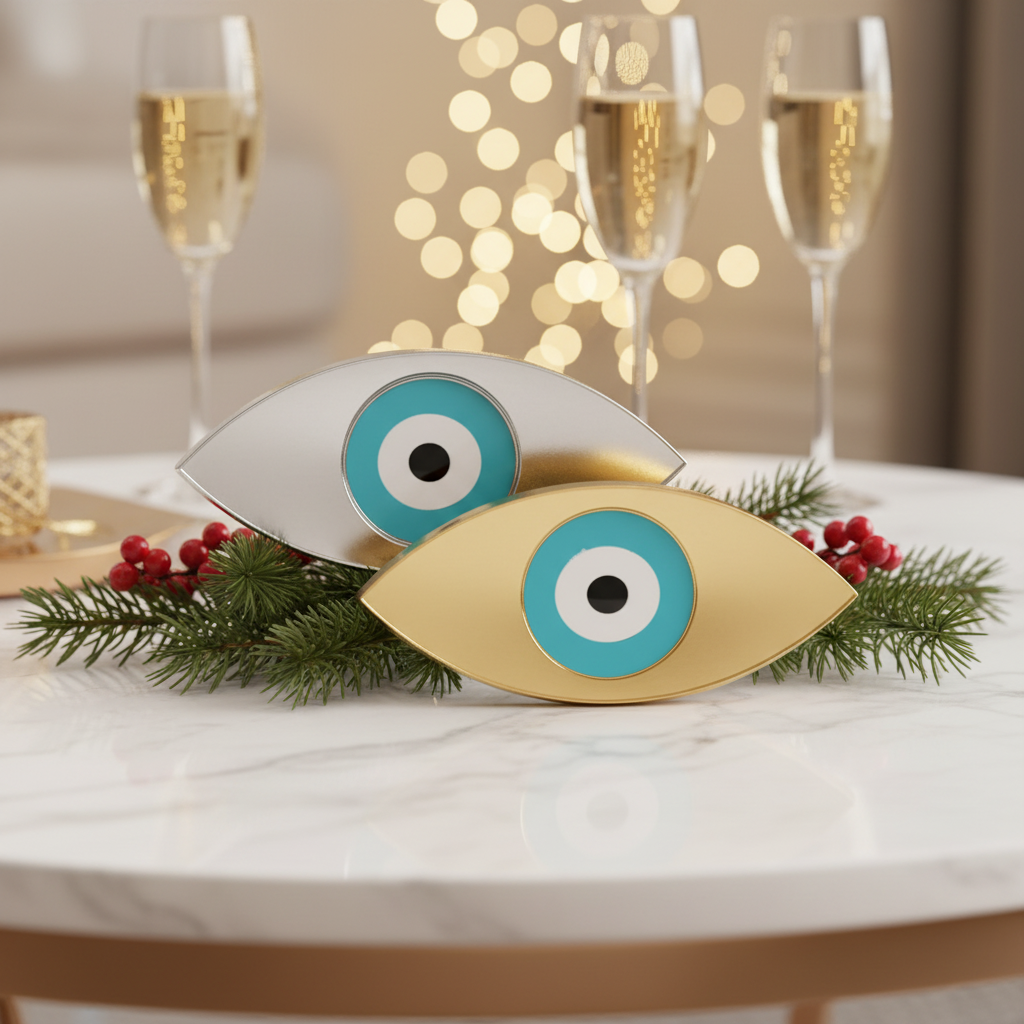 Ένα εντυπωσιακό και διαχρονικό διακοσμητικό γούρι σε οβάλ σχήμα ματιού, κατασκευασμένο από plexiglass καθρέφτη σε δύο επιλογές: χρυσό ή ασημί.