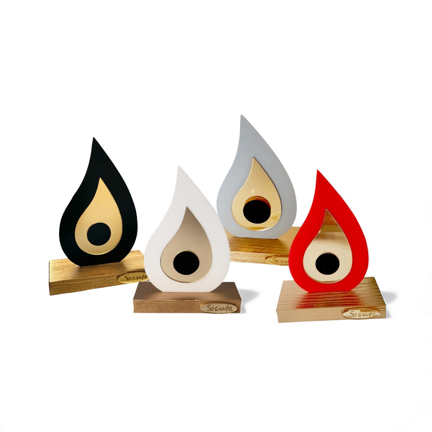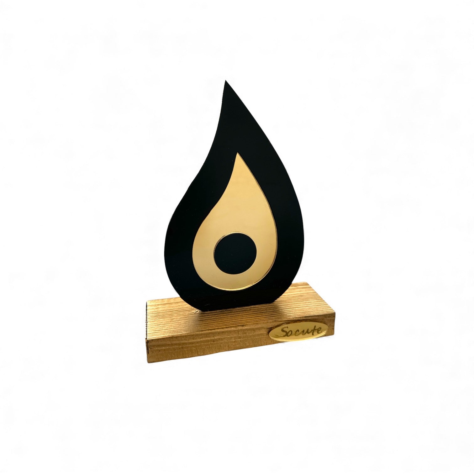 Χειροποίητο επιτραπέζιο γούρι σε σχήμα σταγόνας, κατασκευασμένο από μαύρο plexiglass και διακοσμημένο με μάτι από plexiglass χρυσού καθρέφτη.