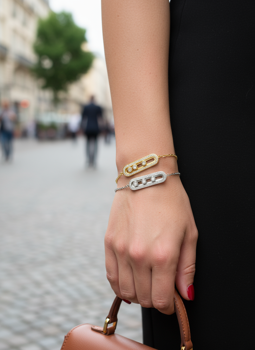 Το Glow Line Sparkle είναι η λαμπερή εκδοχή του industrial-chic στυλ. Ένα διακριτικό αλλά δυναμικό βραχιόλι από ατσάλι, στολισμένο με 3 εντυπωσιακά ζιργκόν και πλαίσιο διακοσμημένο με micro stones. Το απόλυτο everyday glam κομμάτι!