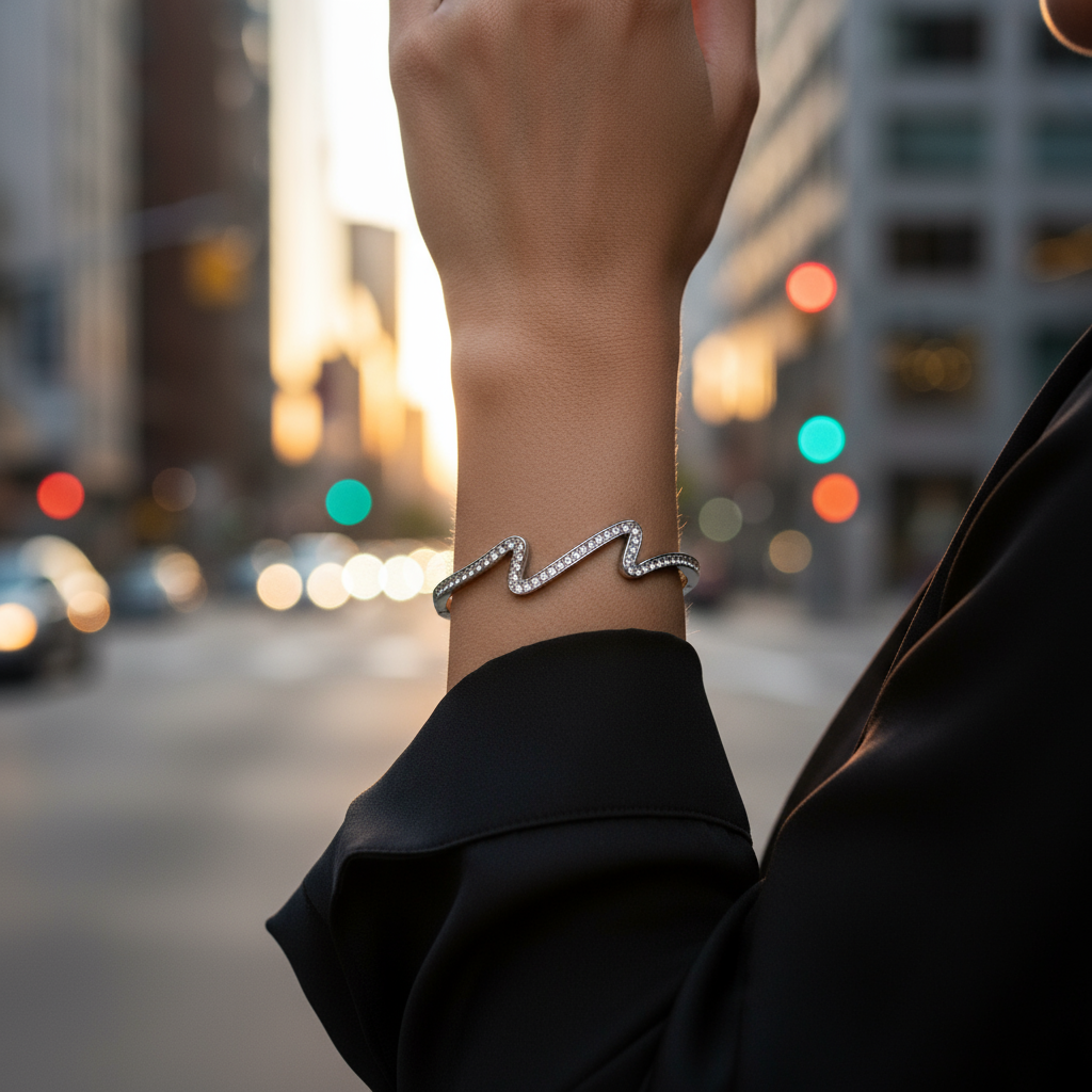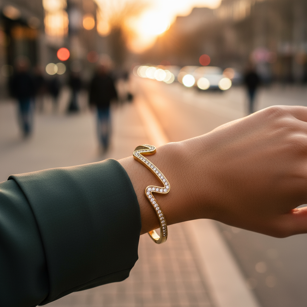 Το Crystal Zigzag Bangle είναι η πιο δυναμική εκδοχή της λάμψης — με κυματιστό, ασύμμετρο design και λαμπερά ζιργκόν που αντικατοπτρίζουν το φως σε κάθε κίνηση. Ένα βραχιόλι που απογειώνει το attitude σου με minimal αλλά bold στυλ. ✨
