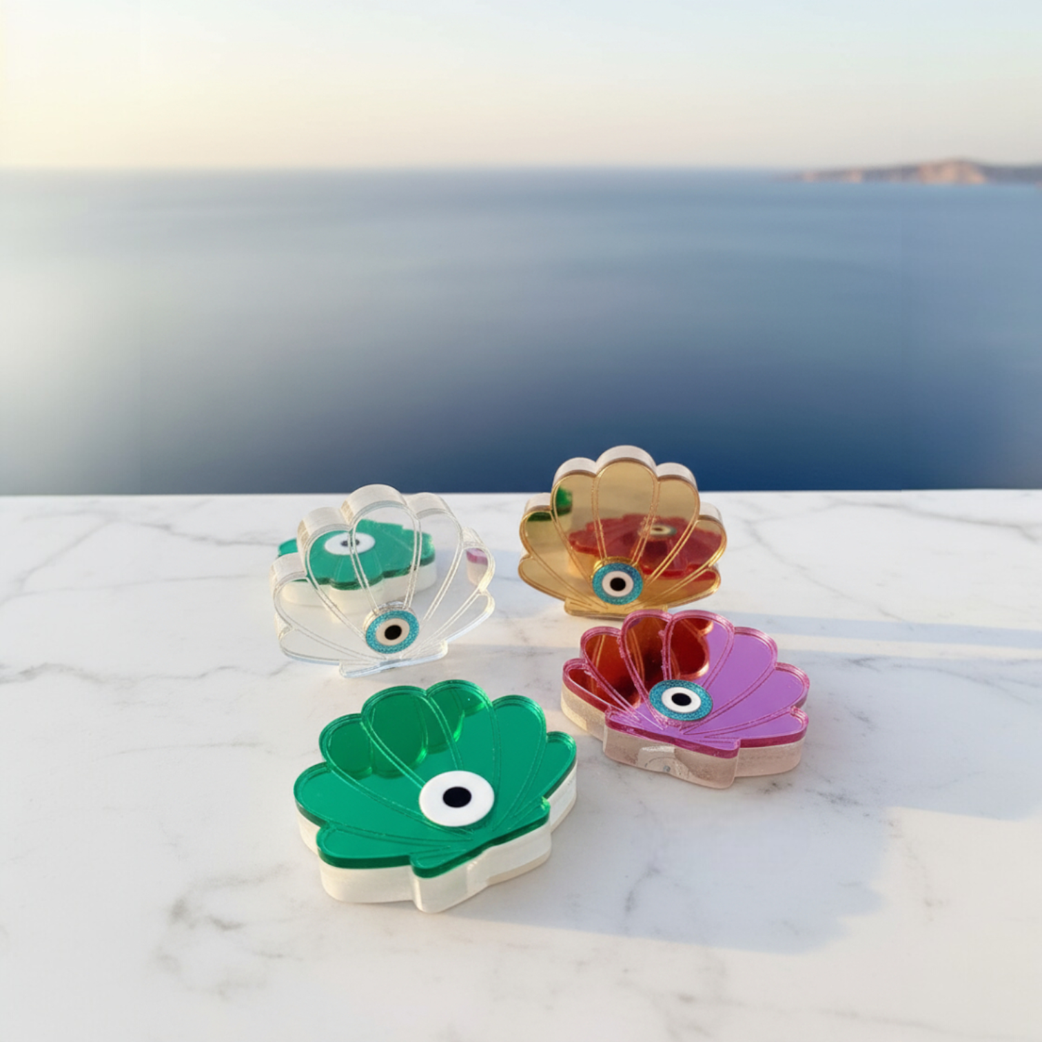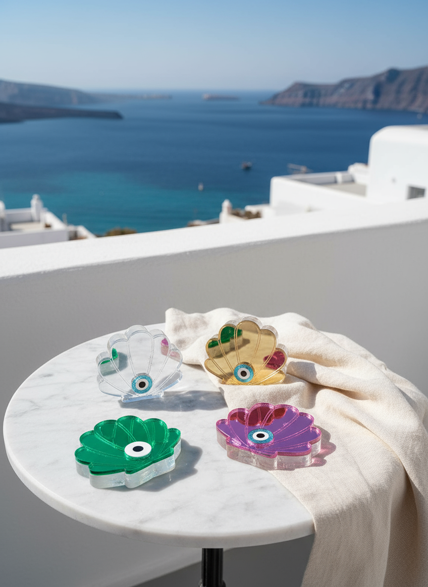 Γούρι Κοχύλι με Μάτι – Plexiglass Καθρέφτης σε Καλοκαιρινά Χρώματα