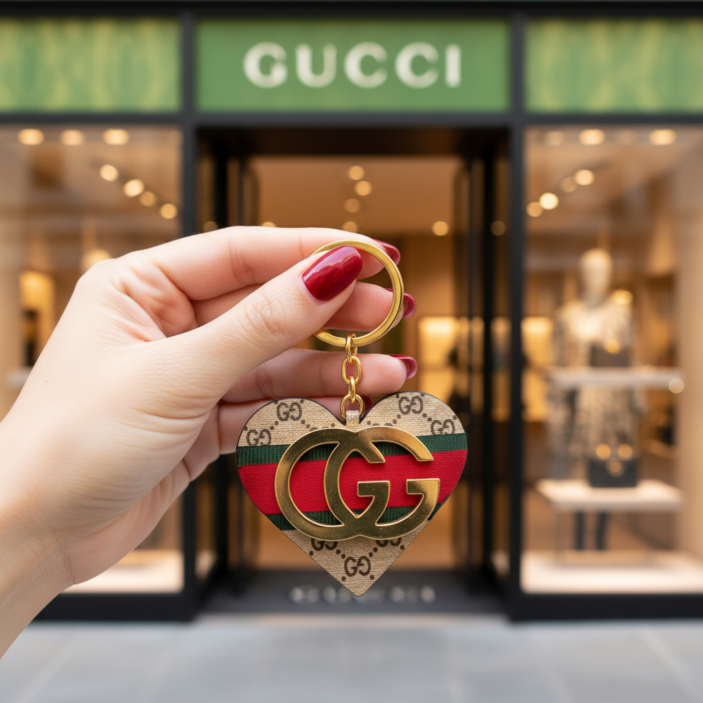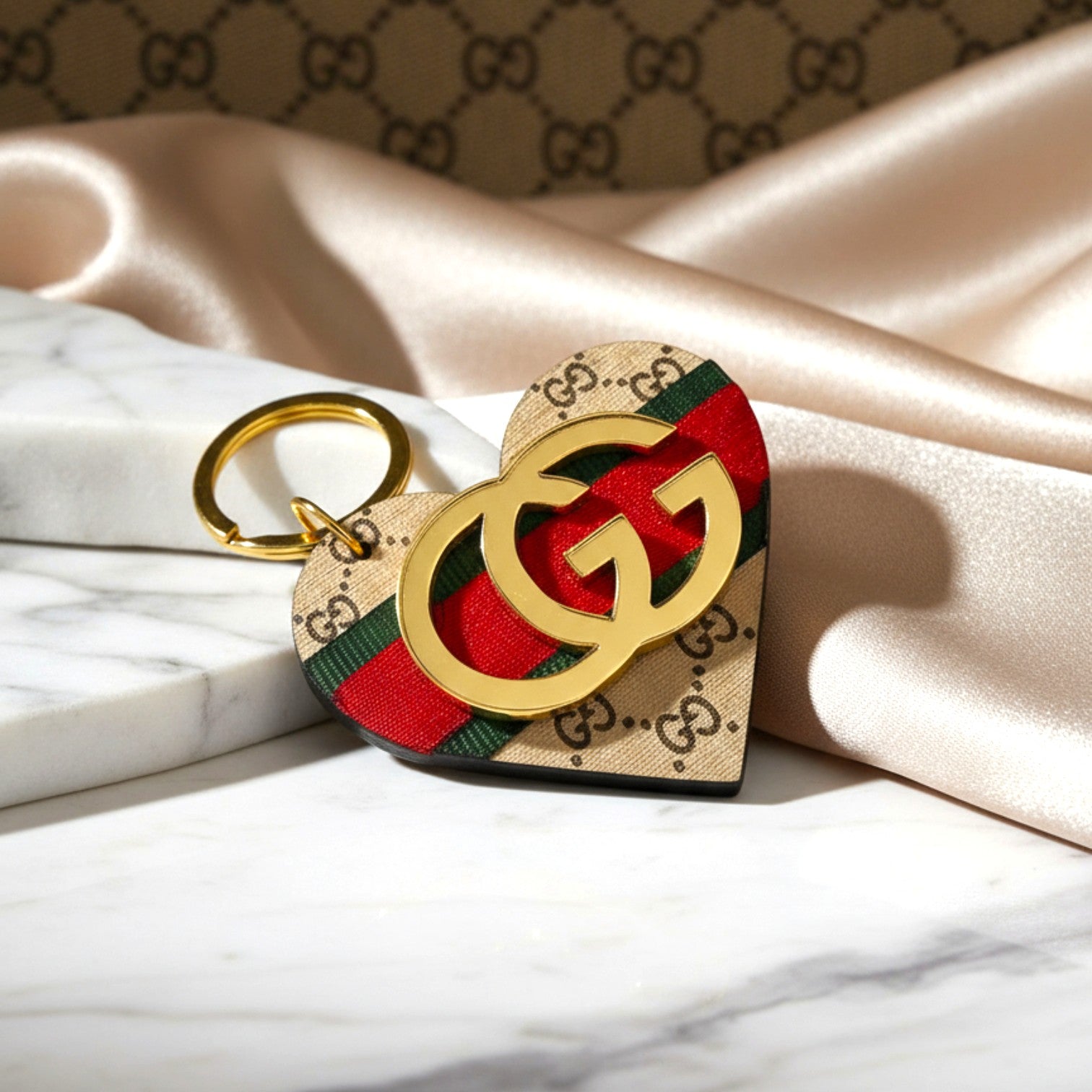 Χειροποίητο, σε σχήμα καρδιάς από ποιοτικό ξύλο MDF, με χαραγμένα σύμβολα και χρυσά mirror αρχικά GG που λάμπουν στο φως. Η κόκκινη & πράσινη κορδέλα φέρνει ιταλικό chic και vintage luxury vibes που δεν περνούν απαρατήρητα 🇮🇹💋
