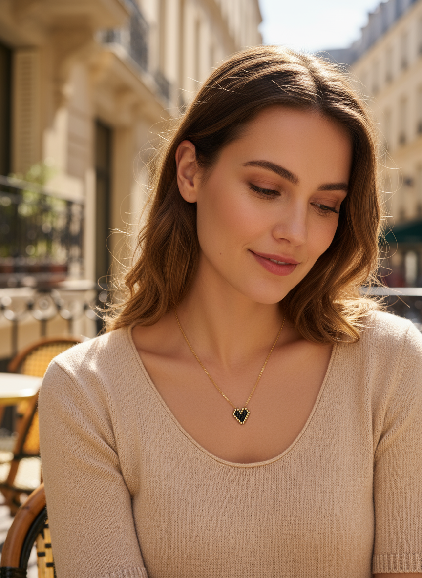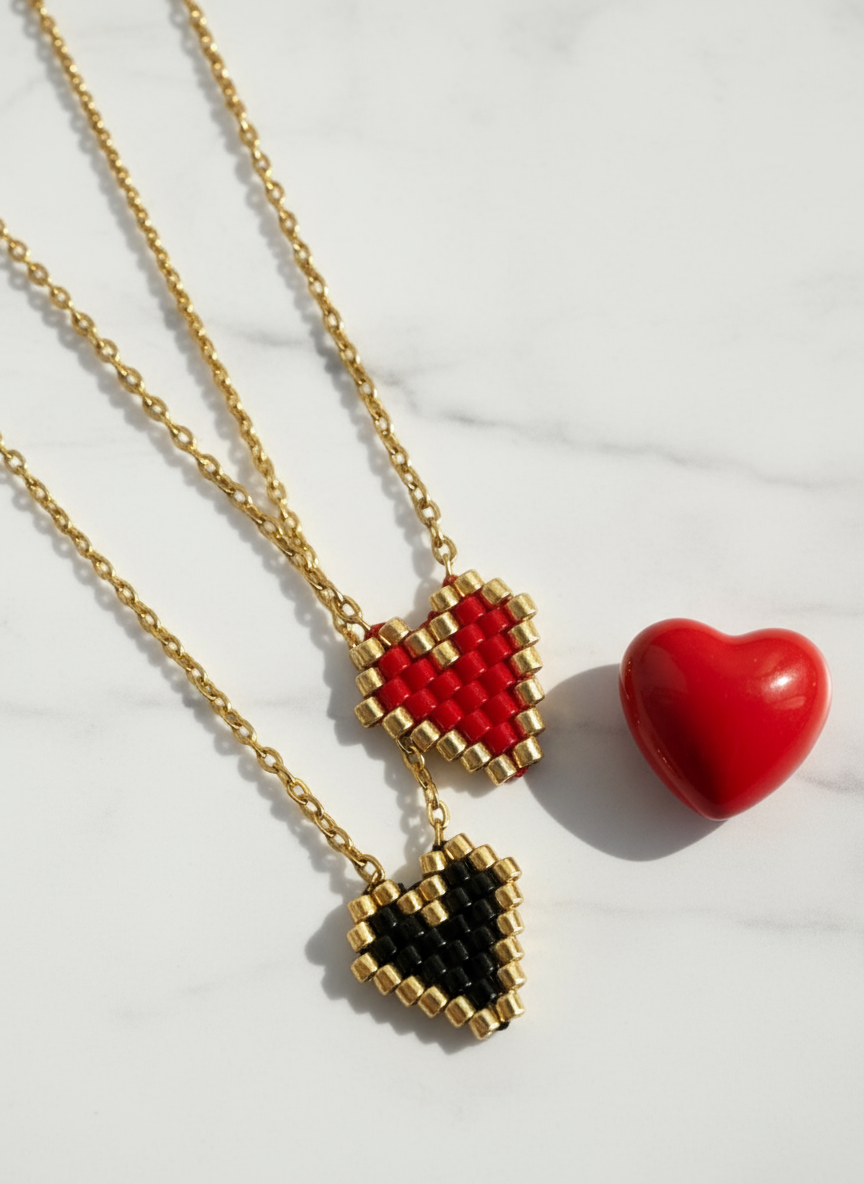Το Heartbit είναι ένα statement mini κολιέ με χειροποίητο μοτίφ καρδιά φτιαγμένο από ιαπωνικές Miyuki χάντρες, πλεγμένες μία-μία με τέχνη και ακρίβεια. Η λεπτή ατσάλινη αλυσίδα σε χρυσό τόνο είναι ανθεκτική και ρυθμιζόμενη (40 + 5 εκ.), για να το φορέσεις είτε μόνο του είτε σε layering.