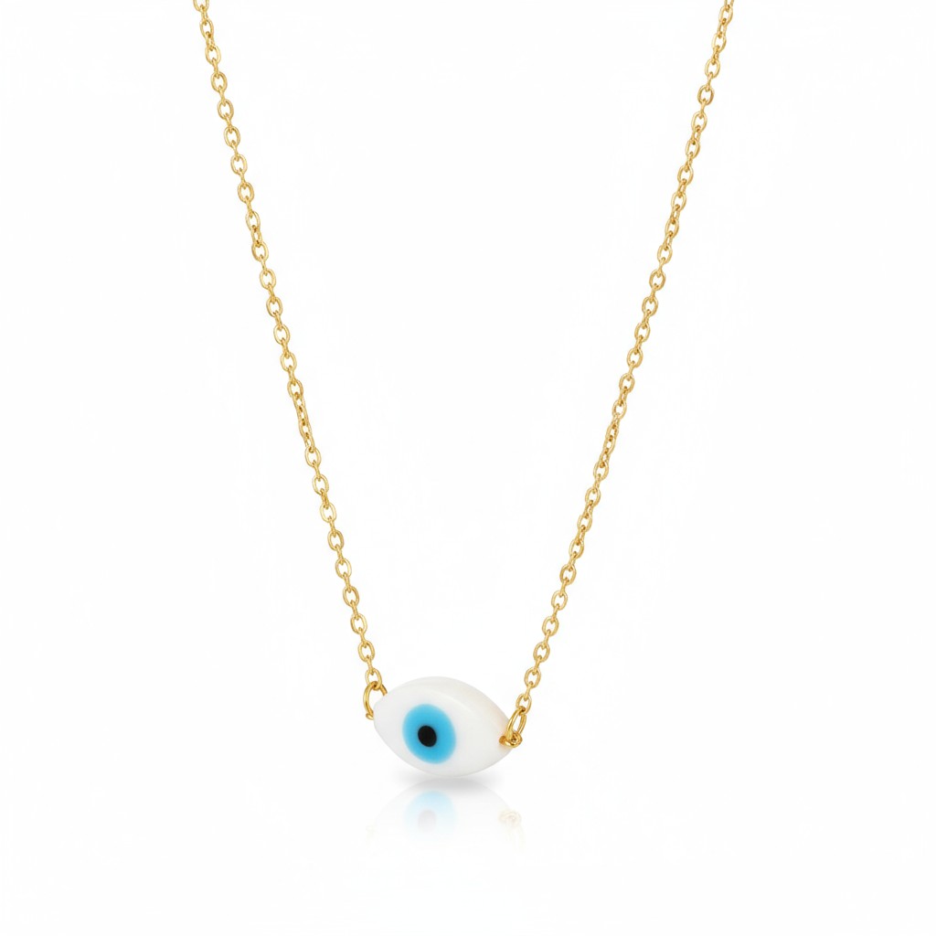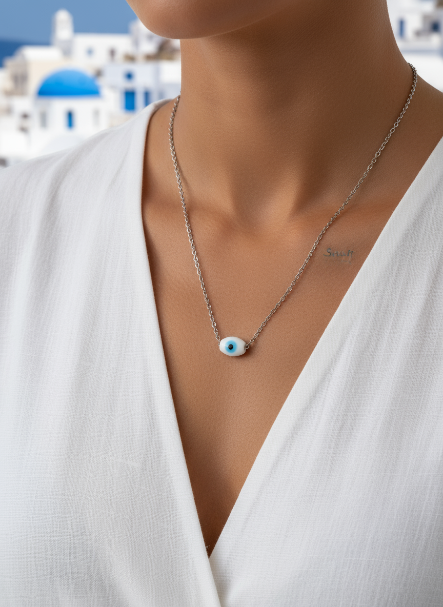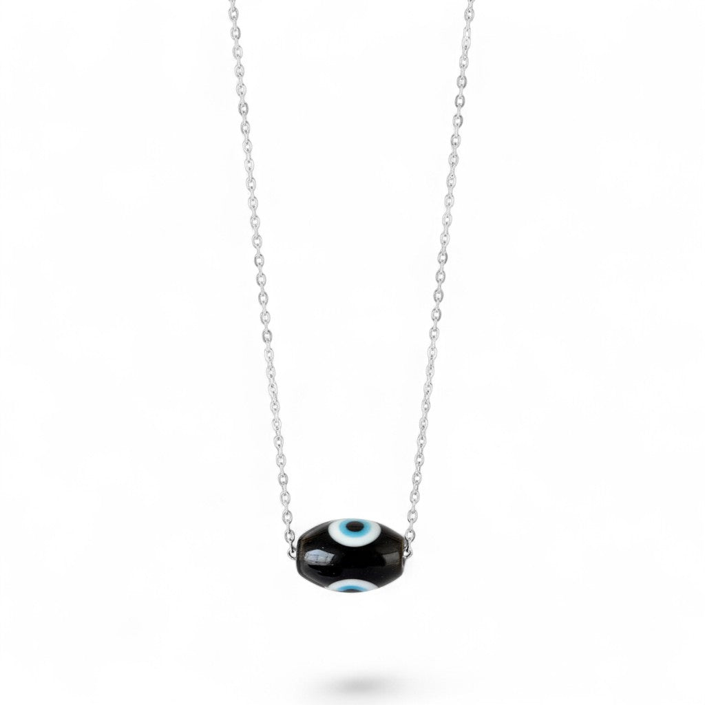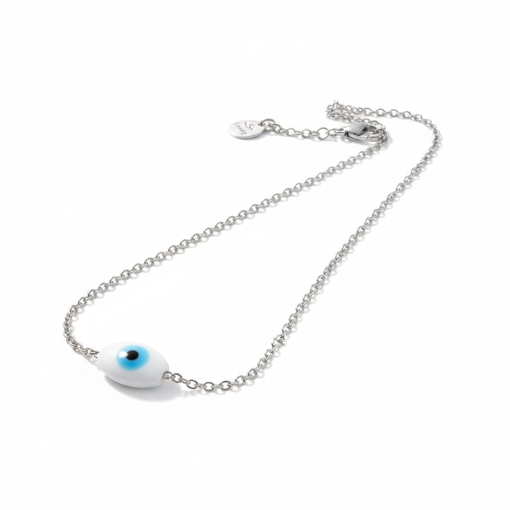 Κολιέ με Γυάλινη Χάντρα Μάτι από Ατσάλι