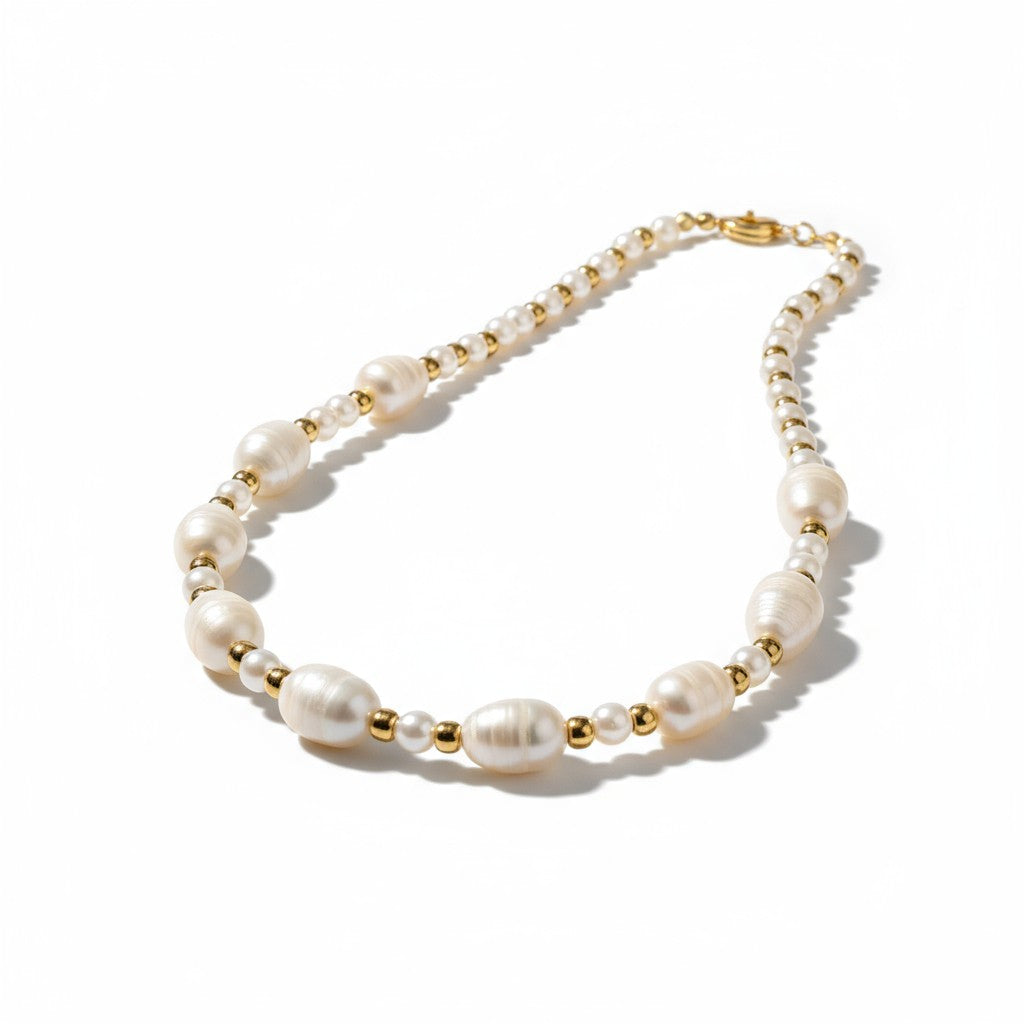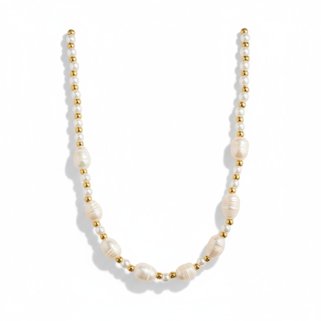 Κολιέ με Γυάλινες & Ακανόνιστες Πέρλες από Ατσάλι