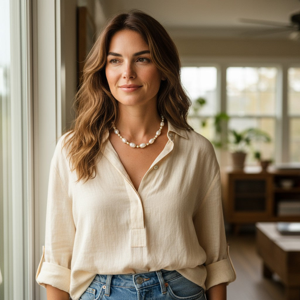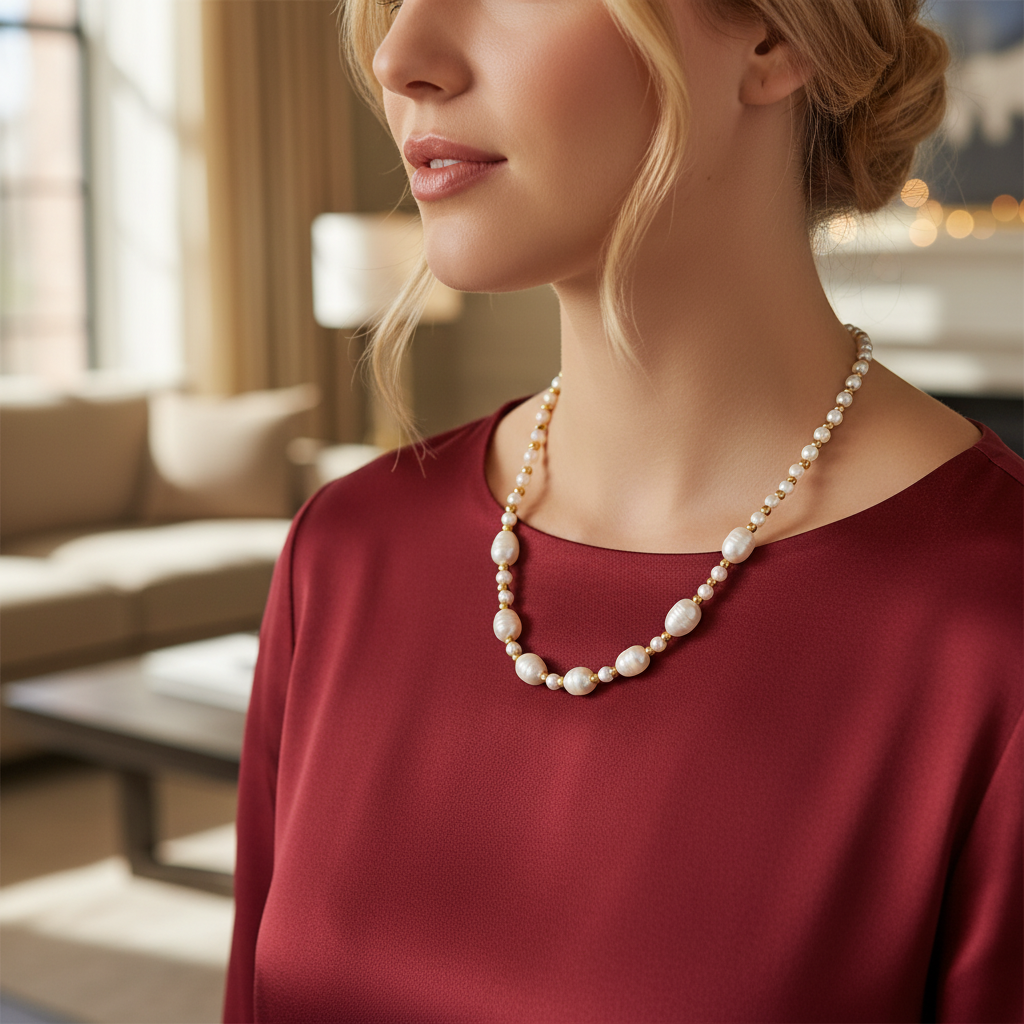 Δοκίμασέ το με satin slip dress, λευκό πουκάμισο ή knit top — η λάμψη του κάνει όλη τη δουλειά.