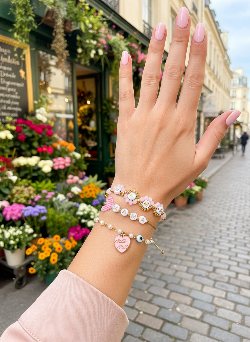 Mama Heart Rosary Bracelet – Χειροποίητο Βραχιόλι με Πέρλες & Καρδιά “Mama”