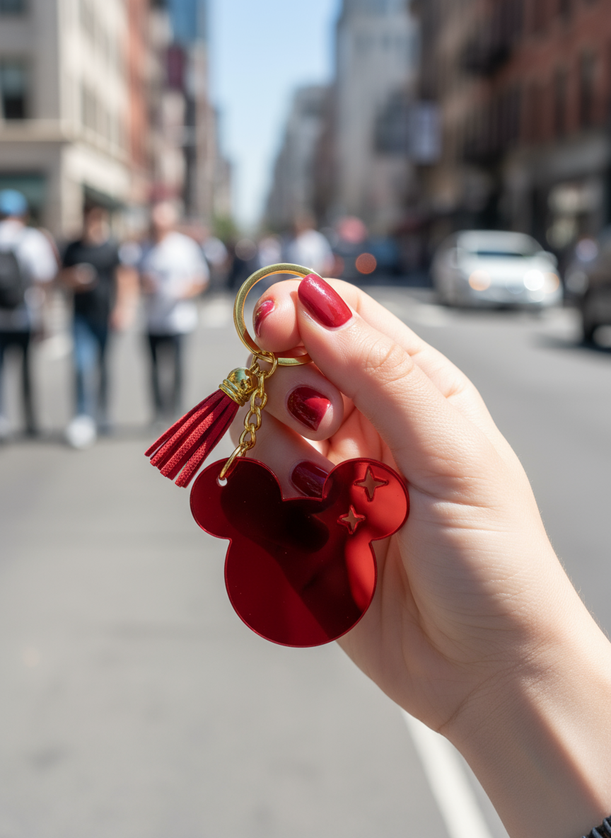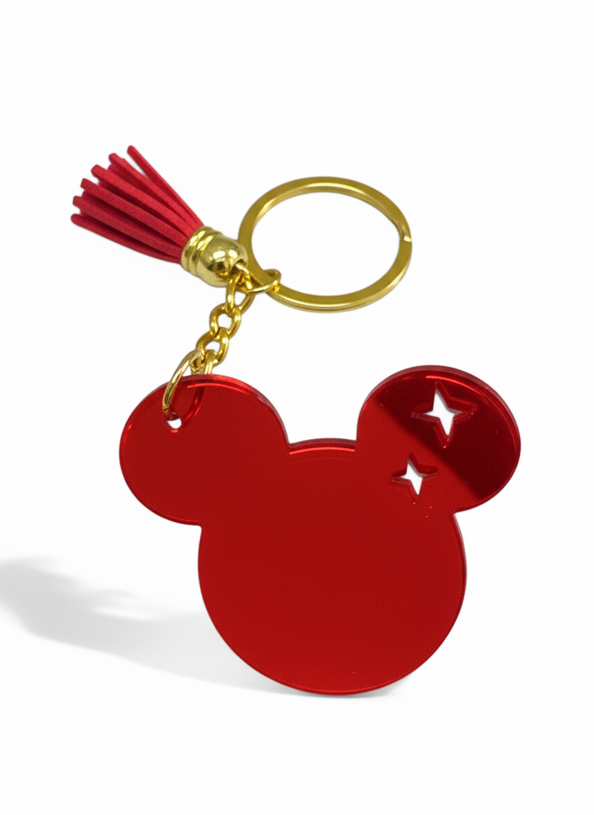 Χειροποίητο από πλεξιγκλάς καθρέφτη, σε σχήμα κεφαλιού ποντικιού με διάτρητα αστεράκια και φουντίτσα που κουνιέται παιχνιδιάρικα. Το τέλειο αξεσουάρ για τσάντες, κλειδιά ή σακίδια, που δίνει χαρούμενη λάμψη σε κάθε μέρα σου 💖