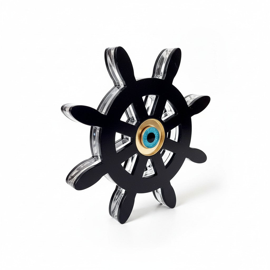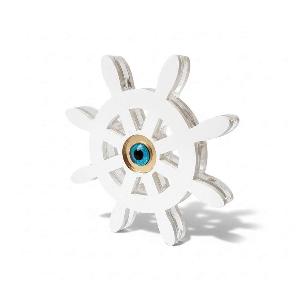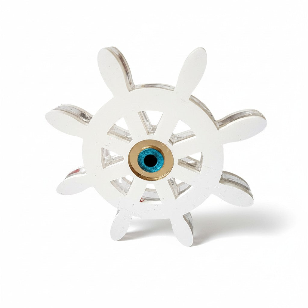 Χειροποίητο επιτράπεζιο γούρι παραγωγής μας από διπλό πλεξιγκλάς σε σχήμα τιμονιού με μάτι από χρυσό καθρέφτη. Τέλειο δώρο για κάθε χώρο.